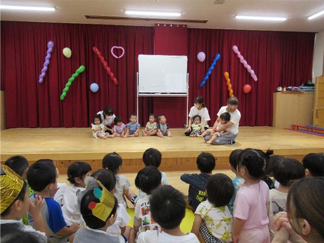 7月のこどもの出し物はうさぎぐみさんでした。 手遊びと、リズムをしてくれました。