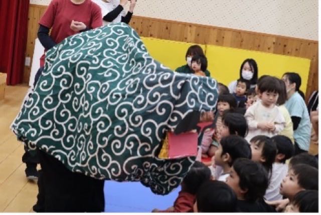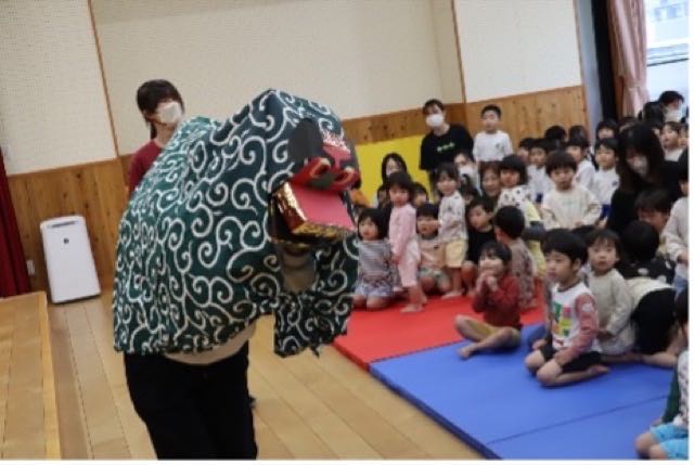 「おやすみたのしかったかな?」などお正月のお話をしたあと、獅子舞が登場しました。