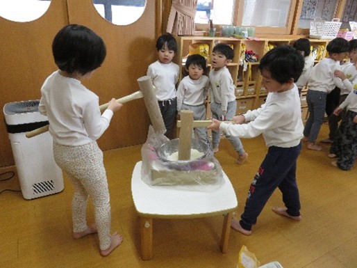 らいおん組は、部屋でもちつきごっこも楽しみました。