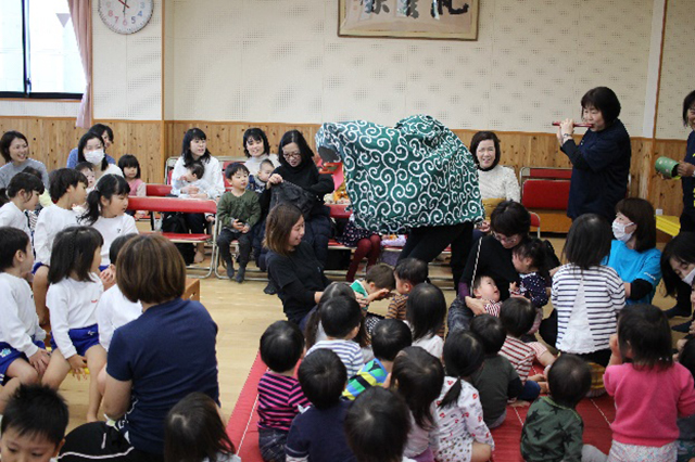 子どもたちも元気いっぱいに登園していて、充実した年末年始をすごしたんだなと感じました。新年の集いでは、獅子舞が入場するとみんな大慌て!!